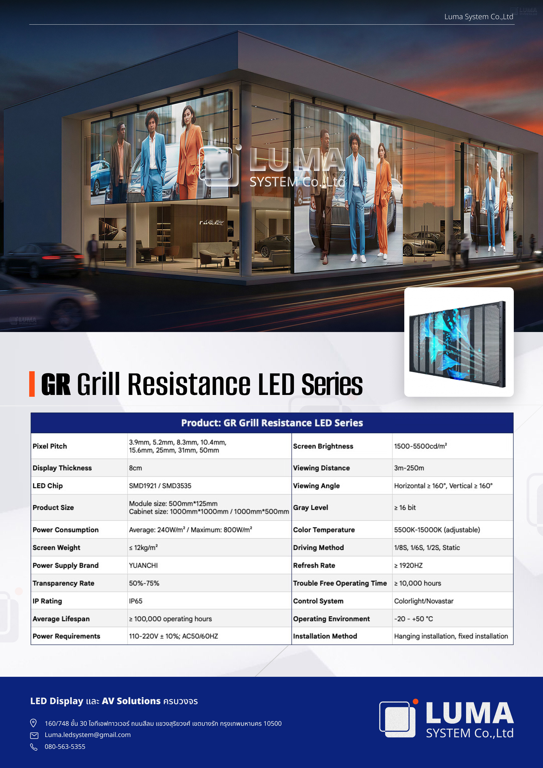 คือระบบแผง LED โปร่งแสงสำหรับการติดตั้งภายนอกอาคาร ที่ สามารถมองทะลุผ่านจอได้เมื่อไม่ได้แสดงภาพหรือปิดการทำงาน ช่วยเปลี่ยนพื้นที่ว่างให้กลายเป็นพื้นที่สื่อโฆษณาและงานตกแต่งได้ อย่างสร้างสรรค์เหมาะสำหรับการใช้งานกับอาคาร สำนักงาน ร้านค้า และพื้นที่สาธารณะต่างๆ โดยยังคงความโปร่งโล่ง ไม่บดบังทัศนวิสัย ของผู้ใช้งานหรือผู้สัญจร โครงสร้างถูกออกแบบมาเพื่อรองรับการใช้งานกลางแจ้ง ทำให้ สามารถติดตั้งได้อย่างกลมกลืนกับสถานที่ พร้อมช่วยยกระดับ ภาพลักษณ์ของสถานที่และแบรนด์ได้อย่างโดดเด่น